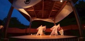 神社で巫女さんが鈴などを持って舞ってくれる奉納、祈祷の舞?または、石見や高千穂で、地元の伝統芸能としての神話劇を見て、あれが「神楽では?」と思っておられるかもしれません。また「舞」というと「日本舞踊」「雅楽」「歌舞伎」もあって、ダンスとは違う、日本的で装束も古式で・・そこにどこか伝統的で優美なものへの憧れもよぎるかもしれません。もっと古代に戻って、日本における神楽の原点は、古事記にて伝承される「岩戸隠れ」の神話。天の岩戸に隠れたアマテラスさまを、岩戸からお出しするためにアメノウズメさまが神がかりでおこなった舞。すなわち、世を暗闇から救ったのがウズメの神楽です。